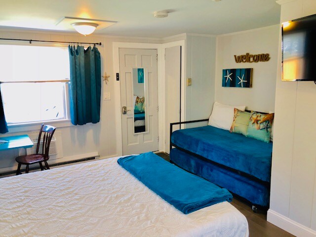 Newly renovated 250 square ft studio at Near Beach Rentals. 300 yards to Glendon Beach. Fully furnished studio waits for your Cape Cod getaway. Head to the beach in the morning and you're close enough to walk back for lunch. Studio comes with a queen bed, a twin bed, kitchenette with stove, fridge, coffee maker and microwave, air conditioning, 40" smart TV, newly renovated bathroom, Wifi, and access to the shared courtyard with grills and furniture.