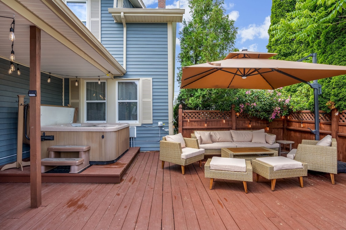This enchanting 2-bedroom home is a coastal dream come true! Luxurious and well-appointed, Casco Bay House sleeps up to six, provides a five-star stay, offers all of the comforts of home AND a relaxing hot tub spa. With stunning views of the water, the house also has easy access to dining, shopping, and sightseeing in Portland's lively Old Port district (just 5 minutes away). Whether you seek quiet tranquility or want to hit the town, this waterside house is the perfect home away from home!