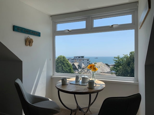This gorgeous apartment for two has so much going for it: a brilliant central location, pretty views over Falmouth's waters and homely interiors. You're close to the hum drum of the bustling town and all that it offers, whilst also being tucked away in a peaceful bolthole. Sunny morning breakfasts can be enjoyed out on the balcony, watching over the bobbing boats and distant rolling hills or at the breakfast bar in the calming living space.