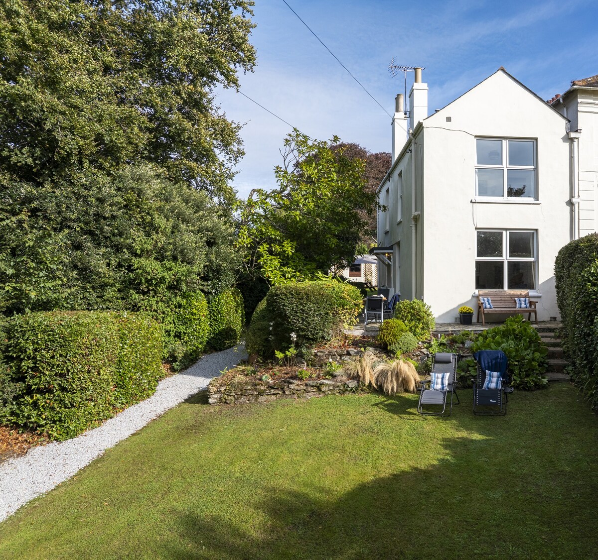 St Gluvias Street, located in old town Penryn offers a mix of modern spacious living with Airey rooms and designer chic touches , Fully functioning Chefs kitchen and is literally a stone's throw from shops, restaurants, wine bars and four takeaways! This amazing centrally heated retreat has everything to offer you including an Amazing private tropical garden tended By Dave Root ( responsible for Over 120 Award winning Chelsea gardens !) -wi-fi is included