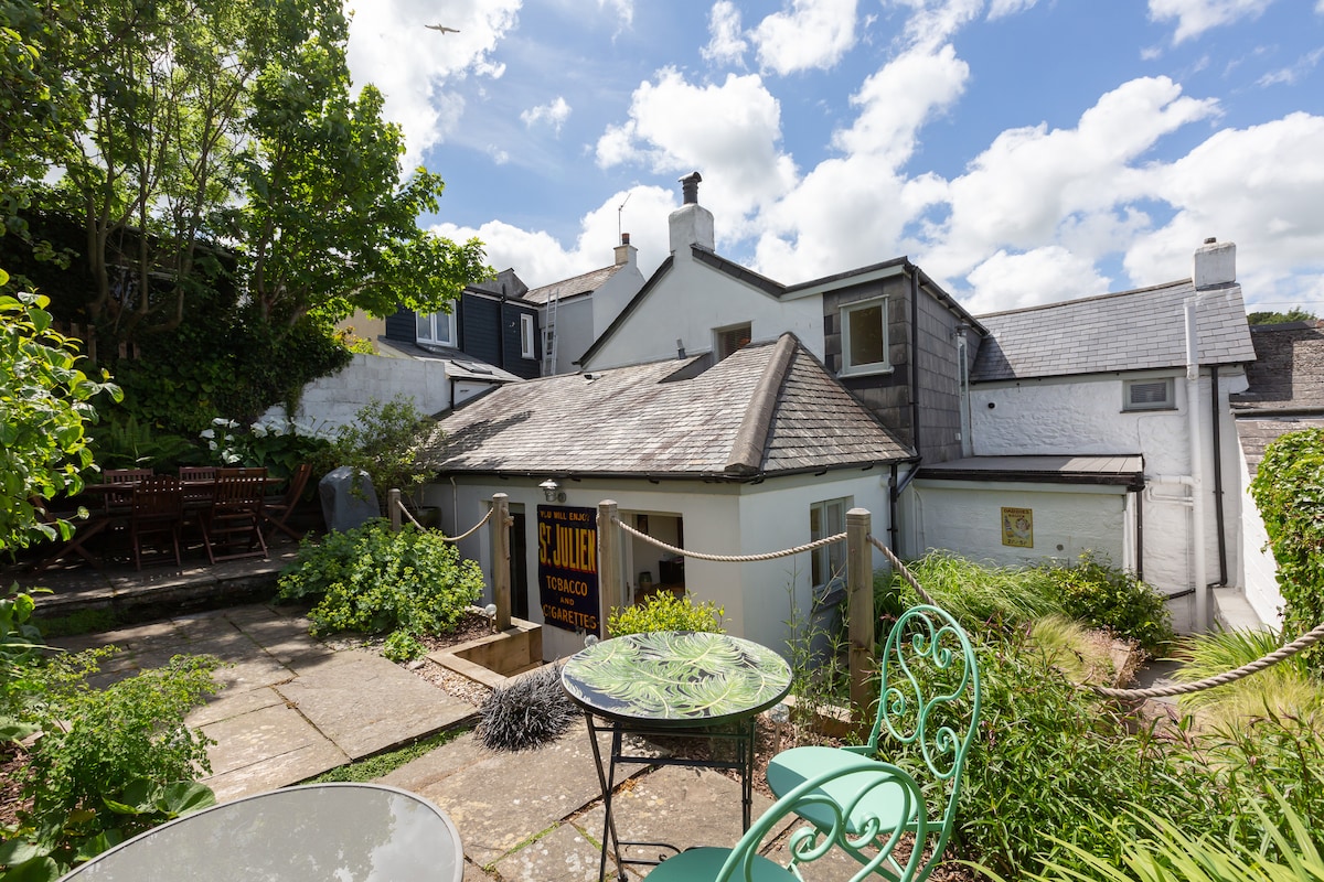 Alexandra Cottage is a secret hideaway in the heart of the ancient market town of Penryn, offering a luxury retreat in one of Cornwall's most beautiful and bustling coastal areas. The stone-built, slate-roofed cottage has a king-sized bed, an ensuite shower room, and a sumptuously stylish open-plan sitting room/kitchen with a woodburner for cosy nights in after bracing walks on the coastal path. A sunny terrace provides the perfect spot for alfresco dinning with a gas BBQ and wood fired pizza oven. Only 5 minutes drive is the harbour town of Falmouth, with its independent shops and art galleries, beaches and the world-famous National Maritime Museum. It's also within easy reach of the Helford River and its glorious sailing waters, hidden coves and fabulous walking routes. The cottage is tucked in the corner of a large walled garden, across the lawn from a beautiful double-fronted stone house. Alexandra Cottage has its own parking and separate entrance.