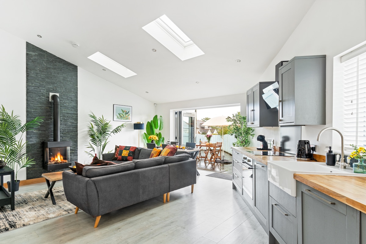 Collingswood is a beautifully spacious newly renovated 4 bedroom 2 bathroom contemporary single level house with a large garden & amazing coastal headland views, situated close to the South West Coast Path between Falmouth & the Helford River, near Maenporth Beach. In a peaceful location but only approx 10-15 mins walk to two beaches, or 2 mins drive to Maenporth beach which has a beachside car park. Good pub, cafes & good restaurants also within walking distance. Perfect for a family holiday!