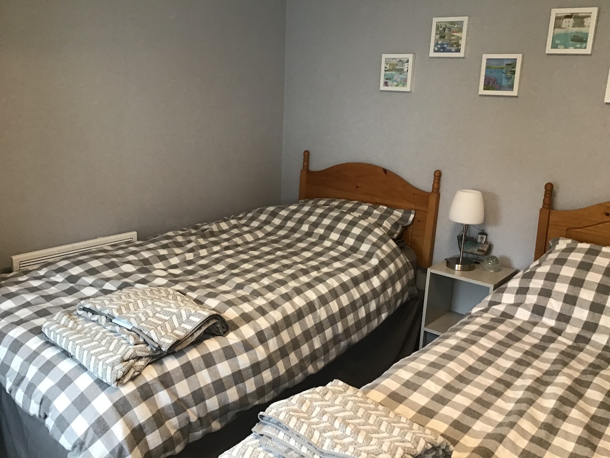 Set in a rural area just outside Penryn, our comfortable guest suite is on the first floor of our home. We are conveniently located between Falmouth and Truro. The accommodation provides plenty of space and can accommodate up to 4 people (king size bed plus a sofa bed). There is no kitchen, but a kettle, toaster and microwave are available. Guests will have their own key (accessible in a lockbox) and have their own entrance to the guest suite. There is plenty of parking available for guests.