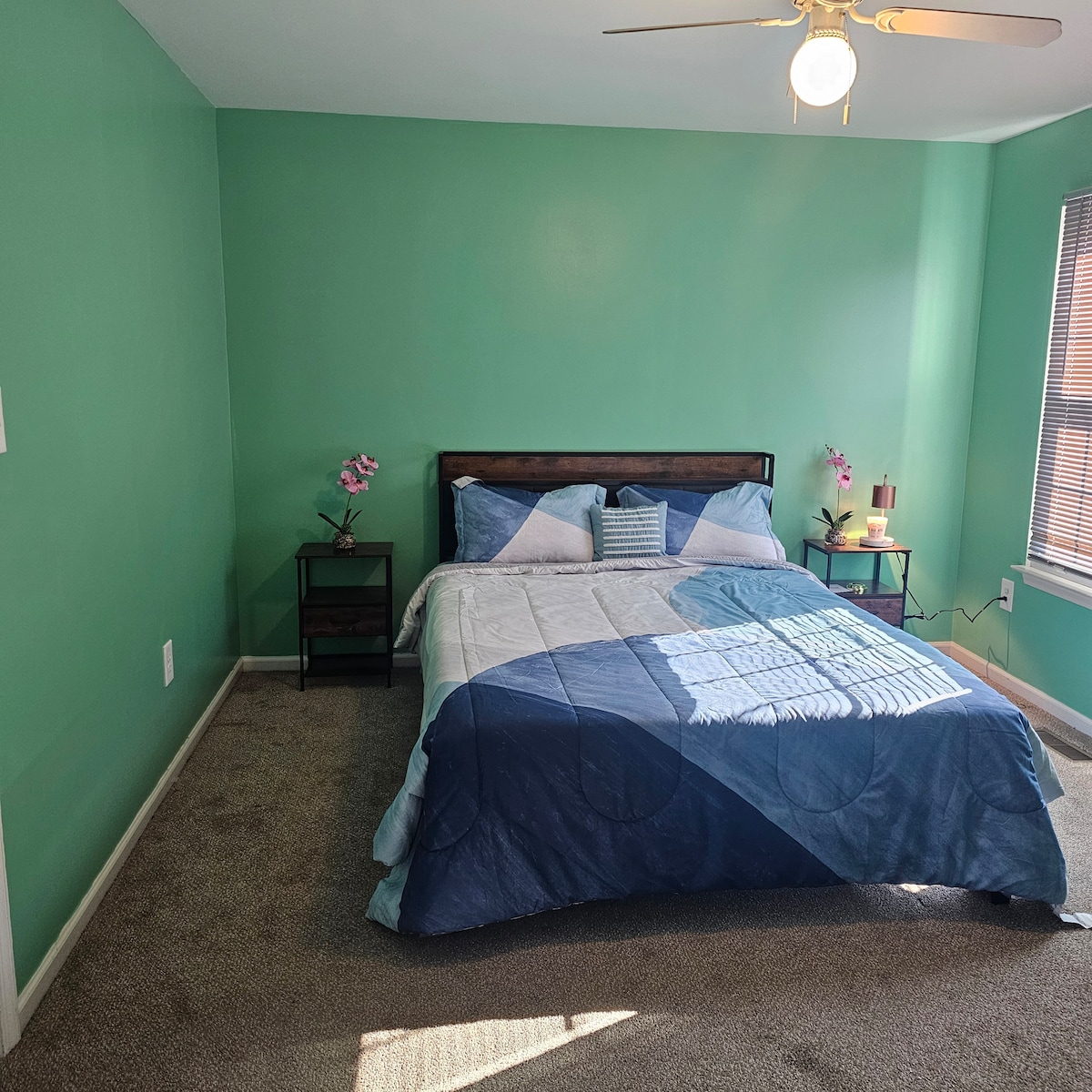 “Stay Awhile” is a spacious walk out basement apartment in our home, very clean, in a quiet neighborhood minutes from Old Town Fredericksburg, University of Mary Washington, Fredericksburg Convention Center, FredNats baseball stadium, restaurants, shopping, historical sights, battlefields & Heritage Trail along the Rappahannock River. We have a walk/run/bike trail in our neighborhood and a tandem bike you may borrow. Enjoy our 82” TV and WIFI. We are 1 hr from DC & Richmond