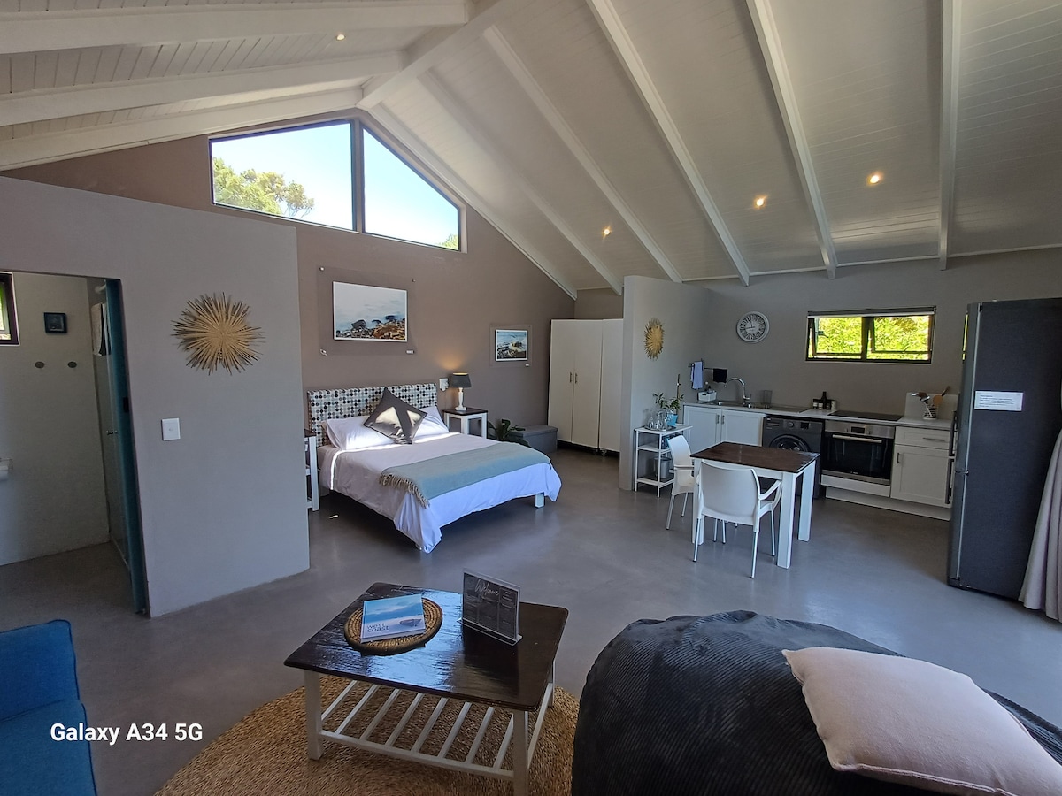 Our spacious loft apartment has back-up power, which sustains us through stage 5 load shedding. Located in a lovely, quiet neighborhood in Onrus within walking distance to the beach, tidal pools and coastal paths. The loft has lots of natural light & beautiful mountain views. There is a Queen size bed and sleeper couch for young children. Spacious seating area with books and tourism guides. The kitchenette is a functional, practical space where you can make tea or coffee or prepare a light meal.