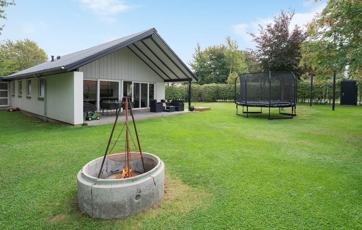 Velkommen til vores luksuriøse spa-getaway, perfekt til 9-10 personer. Huset byder på en åben entré til køkken og stue, et stort soveværelse med eget bad, to soveværelser med dobbeltsenge og et børneværelse med køjeseng. Aktivitetsrummet har bordfodbold og en sovesofa. Nyd udendørslivet på den overdækkede træterrasse med hot tub, koldtvandsbassin og ekstern sauna. Ideelt beliggende tæt på strande og vilde heste, er dette hus perfekt til en afslappende ferie for både voksne og børn.