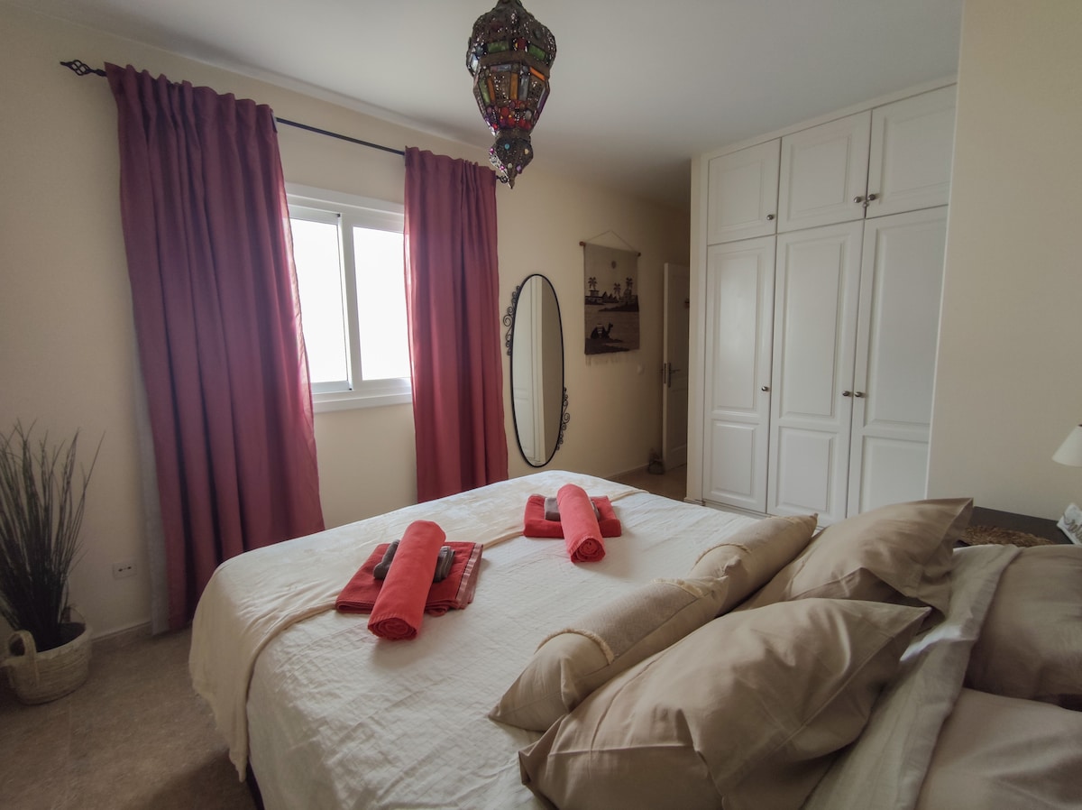 Paradise apartment seafront Famara beach. Comprising 2 bedrooms, fully equipped kitchen, dining room, utility room, bathroom, living room, solarium and terrace with unique views of the Risco. Baby cot is available if needed. Equipped with all appliances, TV and Wifi