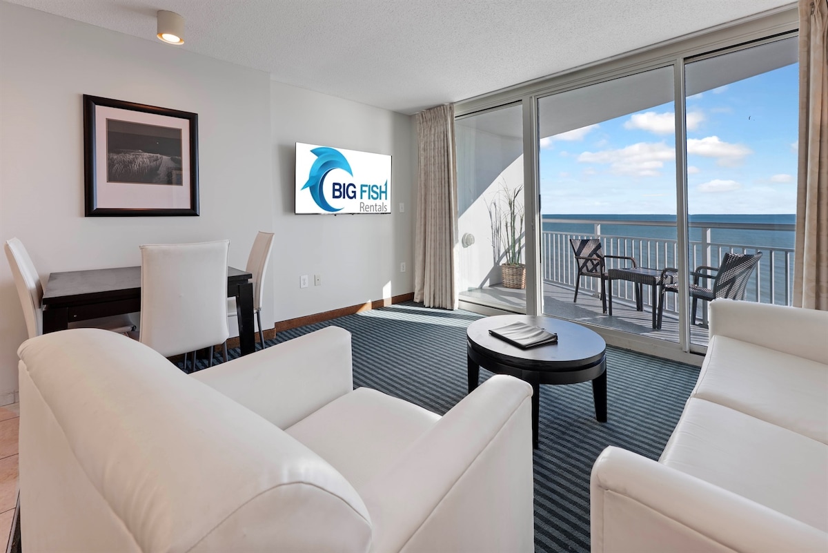 🌊 Discover this newly updated 2BR/2BA suite with breathtaking direct oceanfront views from every room. Located in the heart of Myrtle Beach, this spacious suite accommodates up to 10 guests, perfect for families or groups seeking relaxation and fun 🌅 Both bedrooms feature private balconies and the living room boasts wrap-around floor-to-ceiling windows , offering a 360-degree view of the stunning Atlantic Coast✨ Sip coffee on the balcony and listen to waves with relax and endless fun memories