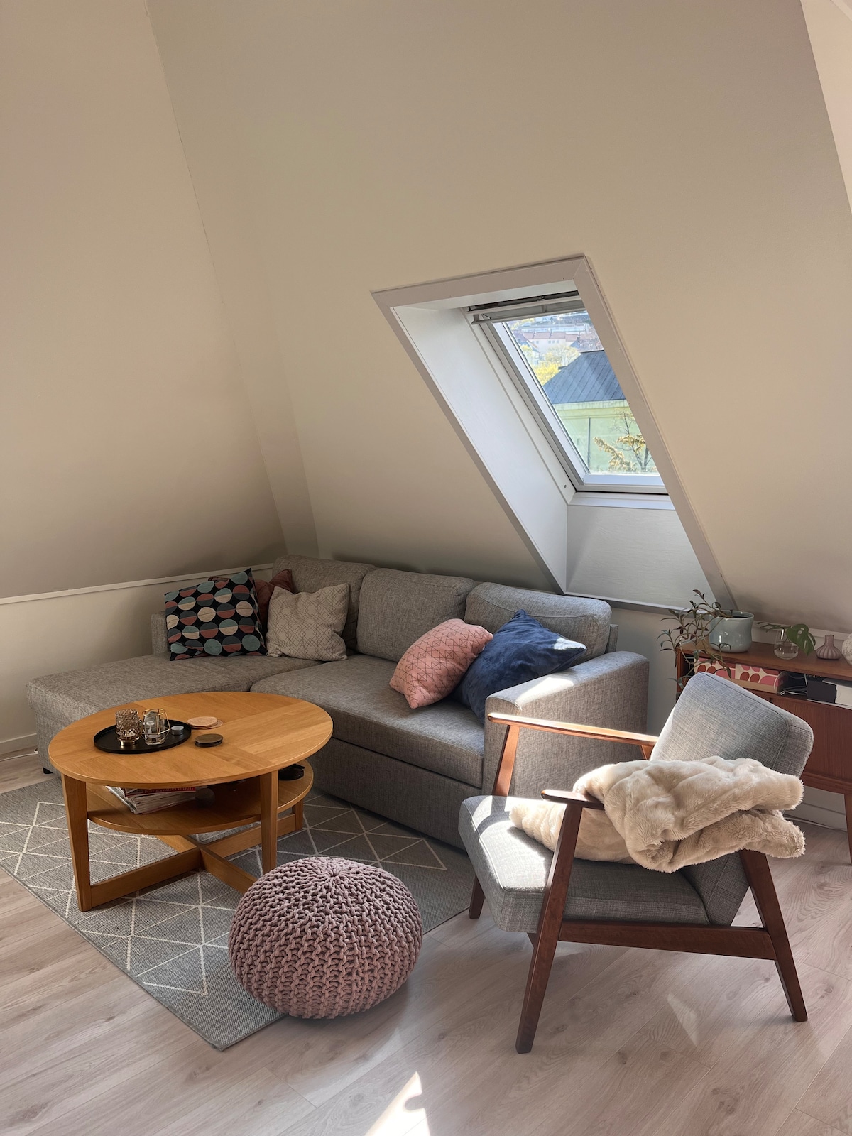 Lyst og rolig loft midt i Bergen sentrum. Flott utsikt, koselige soverom, velutstyrt kjøkken, rask Wi-Fi og gangavstand til attraksjoner. Utsikt over byens tak og fjell. Tog- og busstasjonen ligger 10 min unna, Bybanen 5 min–med direkte forbindelse til flyplassen. Bryggen, Fløibanen, museer, butikker og kaféer er i kort gangavstand. Leiligheten er arkitekttegnet og en del av vårt familiehjem. Vi bor selv i huset, så du får en ekte opplevelse av hverdagslivet i Bergen. En rolig base –midt i byen!