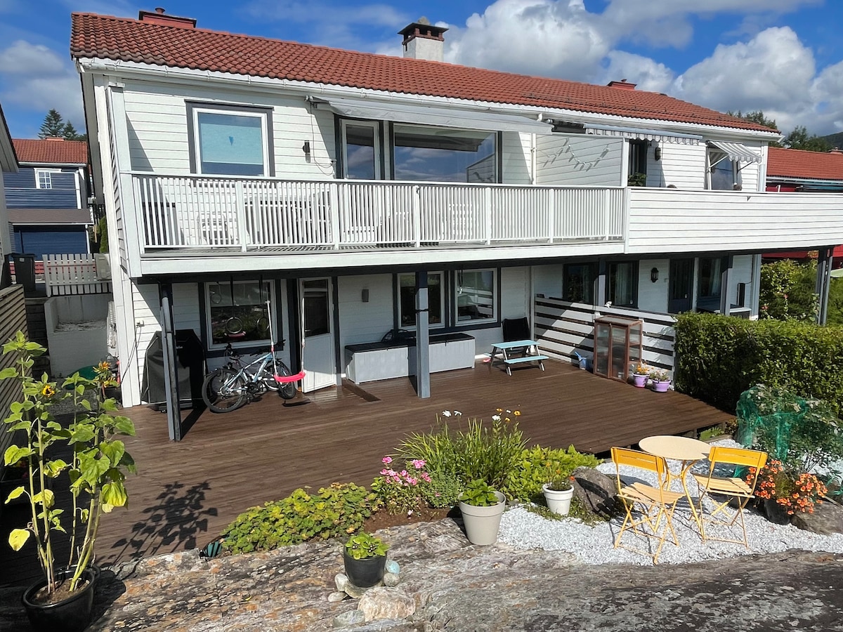 Come live in this cozy terraced house while visiting Bergen with your family and furry friends. The house is placed in a quiet neighborhood while being just 10 minutes away from the city centre. Enjoy a beautiful view over the valley and surrounding mountains at both sunrise and sunset from our spacious terrace.