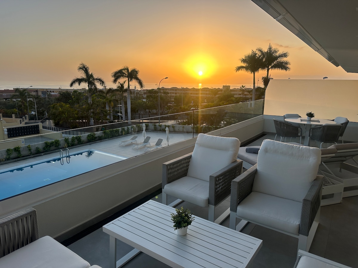 Relax with your friends or family at our minimalist and peaceful apartment, equipped, modern and bright! Located in the residential area of Fañabé, this charming all exterior apartment has 2 spacious bedrooms with fitted closets, 2 large and complete bathrooms, one located within the main bedroom. Fully equipped kitchen. - Spacious living room with a chaise longue, Smart TV and free high speed internet of 300MB and 4K SmartTV. Easy peasy free street parking!