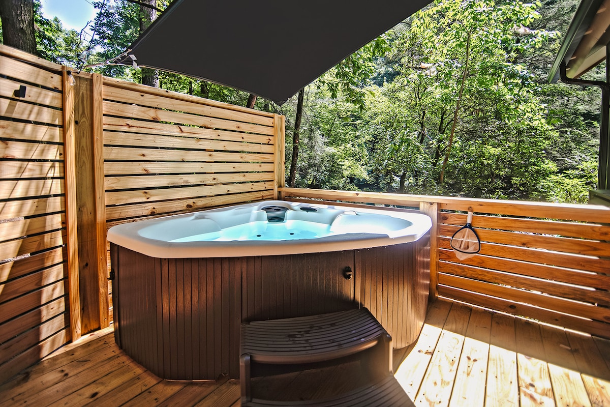 平均评分 4.95 分(满分 5 分),共 102 条评价The Brook | 小溪畔小屋 | 热水浴缸和派对门廊