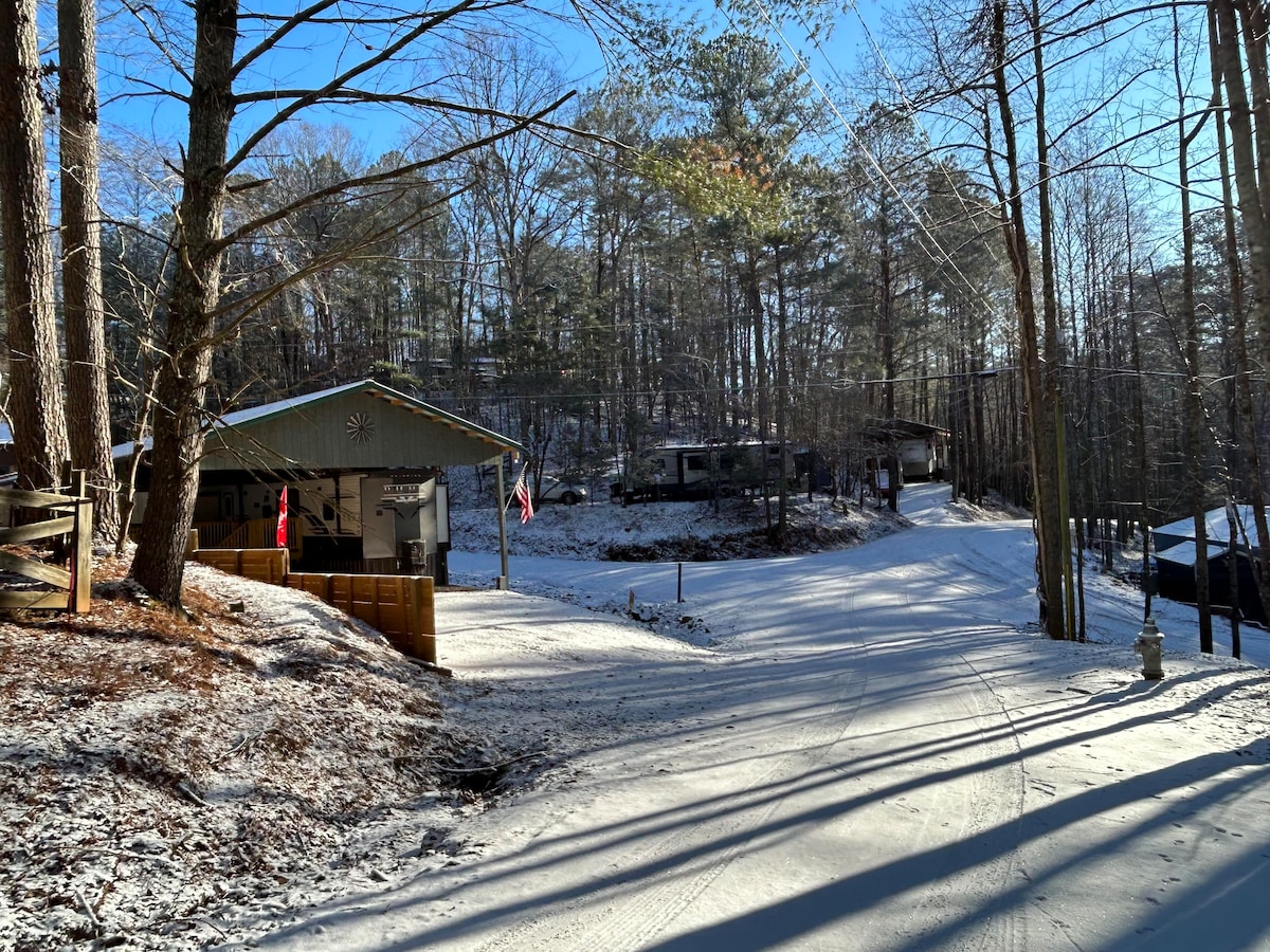 Reconnect with nature at this memorable escape. Get away from it all when you stay under the trees and take in all the mountain air and nature have to offer. You will be staying in a trailer with one queen bedroom and a back bunk area for the kids or to be used as storage for the adults. There is an electric fireplace in the living area and heats the entire unit which adds to the ambiance. You will also enjoy all the amenities that Coosawattee has to offer including feeding deer from the deck.