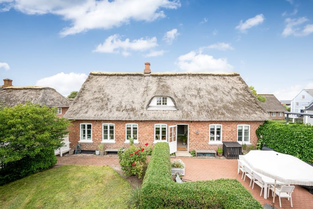 Spend your vacation in Sønderho - Denmark's Most Beautiful Village in 2011. Beautiful and charming fanøhaus, carefully restored in 2011, with emphasis given to the conservation of the old fanø style with small windows with its distinctive color. The house is bright and beautiful with accommodation for 6 people. The interior is a tasteful mix of old and new. Situated on 2500 m2 of heather-clad area, about 1 km. from Sønderho city center The house has 6 beds, beautiful new kitchen with dishwasher, a large oven and induction. You will find a comfortable spacious terrace, with good shelter from the east and west winds. The property stands in the wild and there is by nature plenty of heather and pine trees. The house is 110 m2, is thatched roofed and is painted in the old style over the small windows in black, white and green - symbolizing sadness, joy and hope. Over the entrance door there's a hatch, a "arkengaf", which was once the entrance to the attic where they kept hay, heather, and others like that stored. On the ground floor, you will find the entrance hall, a spacious living room with large corner couch, and a dining area with an old long table with a stroke bench and 4 beautiful decorated chairs. Kitchen with induction hob, oven, dishwasher and a fridge with small freezer compartment. Bathroom with shower, bedroom with double bed and a rear entrance with washer and dryer. On the first floor are two bedrooms. One with double bed and one with two single beds. There is also a small toilet. The living room has flat screen TV. The house is equipped with a power-saving and energy efficient heat pump / air conditioner, to heat up the house, it has a fireplace (stove) and electric radiators as well. The heat pump is environmentally friendly and very energy efficient. This means that the house energy cost is very low in cold periods, and makes an ideal holiday home in the winter. The heat pump can be used as air conditioning in the summer time. Large wooden terrace with garden furniture, sun loungers and a barbecue.