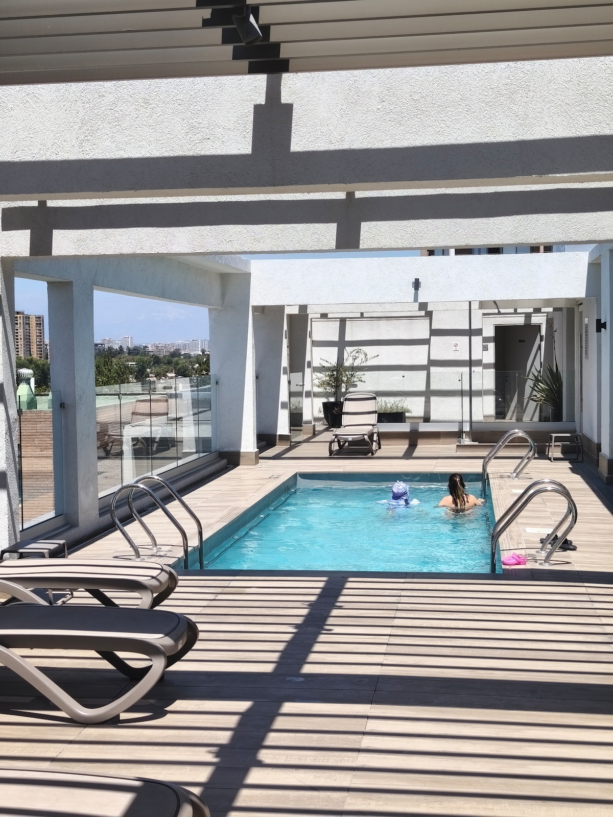 Te invitamos a vivir una experiencia única en este moderno departamento tipo tríplex ubicado en Domeyko, a pasos del metro Toesca. Con 3 niveles bien distribuidos: cocina y living en el primer piso, dormitorio en el segundo y terraza privada en el tercero. Ideal para viajes de trabajo o escapadas urbanas. Cuenta con WiFi, espacios cómodos y excelente conectividad. Estamos en un 4to piso sin ascensor. ¡Diseño y comodidad en plena ciudad, te esperamos!