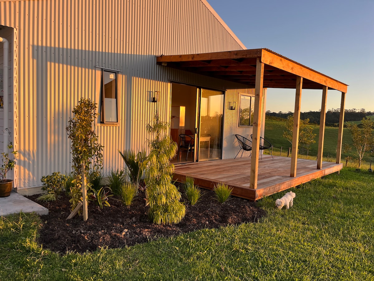 Newly renovated large open plan guest house/studio. Includes a basic cook your own breakfast with freshly laid eggs. Set on our 35 acre family farm on Henderson Bay Road. Horses, chickens & even a pet cow. Plenty of space if you want to bring the boat. Free Wifi & Sky TV.