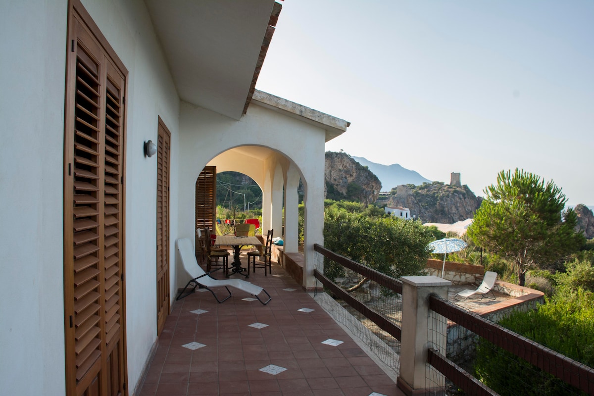 Soggiornerete al piano terra della mia villa a 3 minuti a piedi dal mare, composta da due appartamenti separati. *Non condividerete tutti gli spazi esterni con gli altri ospiti*. L'appartamento gode di un ampio spazio esterno con tavolo da pranzo, divanetti e sdraio, il parcheggio è privato. La villa si trova in una delle aree più suggestive di Scopello, a 200 metri dalla bellissima spiaggia di Cala Mazzo di Sciacca, ed è circondata da un ampio giardino alberato e una suggestiva vista mare