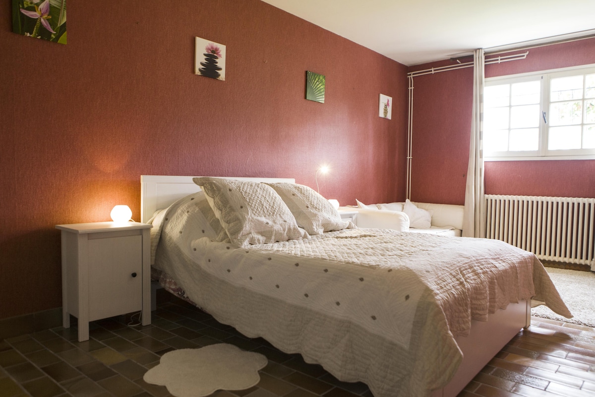 L 'espace dispose de 2 chambres à l'étage permettant d'accueillir 2 couples ou des amis qui voyagent ensemble, une salle d'eau et WC privatifs se situe dans la plus grande chambre.Chaque chambre possède 1 lit de 140 . La maison se trouve dans un lotissement au calme avec vue sur un espace verdoyant. Accès à la terrasse pour détente et petit déjeuner .Accès aux commerces à pied à 500 m. Petit déjeuner sur reservation le logement ne comprend pas de salon Les voyageurs peuvent garer leur véhicule