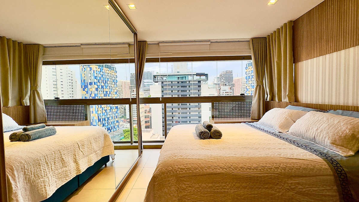 Live at SP's most coveted address, just steps away from the best bars, restaurants, and business hubs. The highlight? Absolute silence with soundproof windows for an impeccable night's sleep. Enjoy hotel comfort with the freedom of home: • Daily cleaning & 24h reception • Free parking with valet service • High-speed Wi-Fi, Inverter AC & Smart TV • Fully equipped kitchen Perfect for business or leisure!