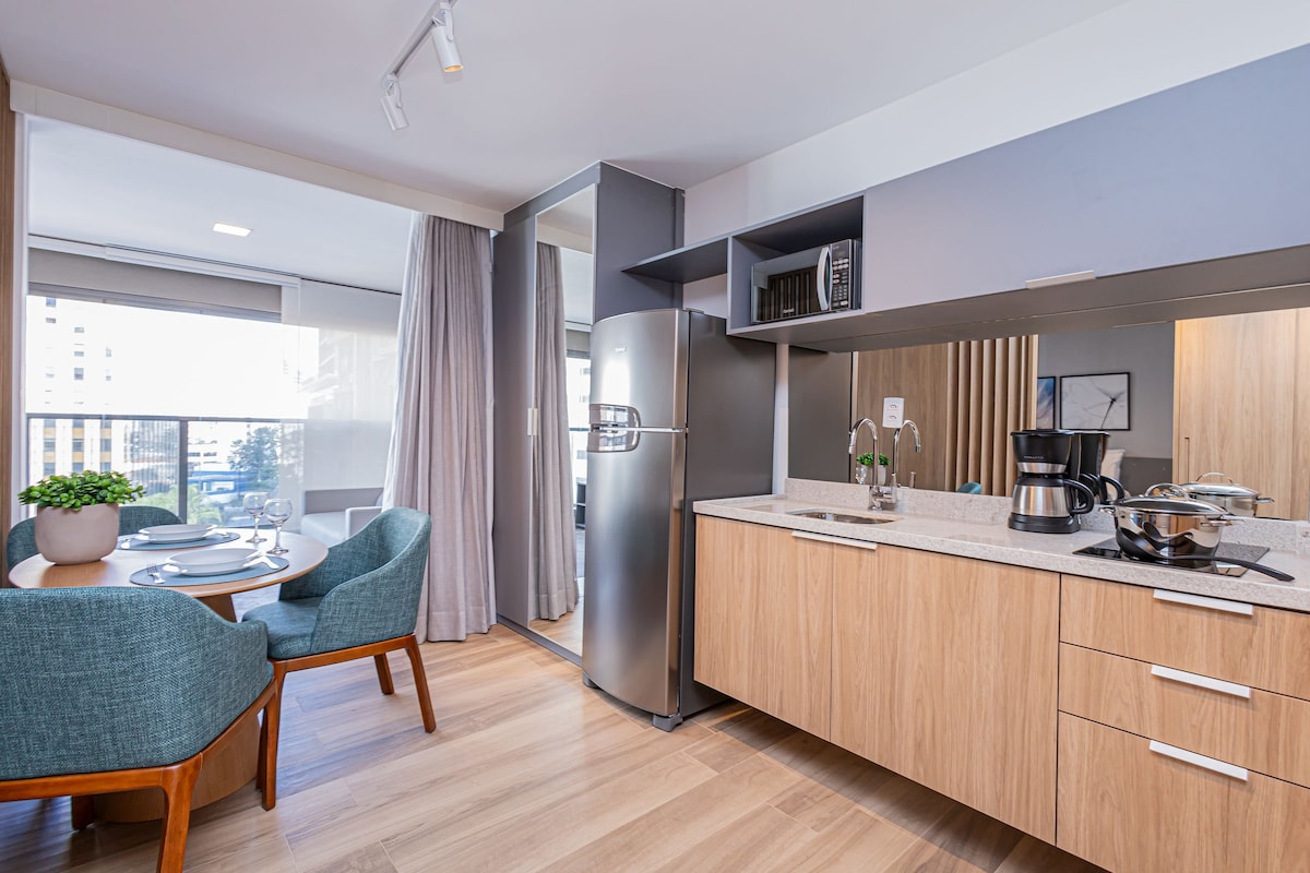 Enjoy an elegant experience in this modern studio with a strategic location in front of the Eldorado Shopping Mall, easy access to the subway stations - 700 m walk from the Faria Lima station, 500 m walk from the Hebraica Rebouças station, and 10 min drive from USP, 15 min from Parque Vila Lobos, Parque do Povo, Vila Madalena (the best area for bars and restaurants in São Paulo). Welcome and come enjoy a structure ready to make you feel at home. Unfortunately the building does not have parking
