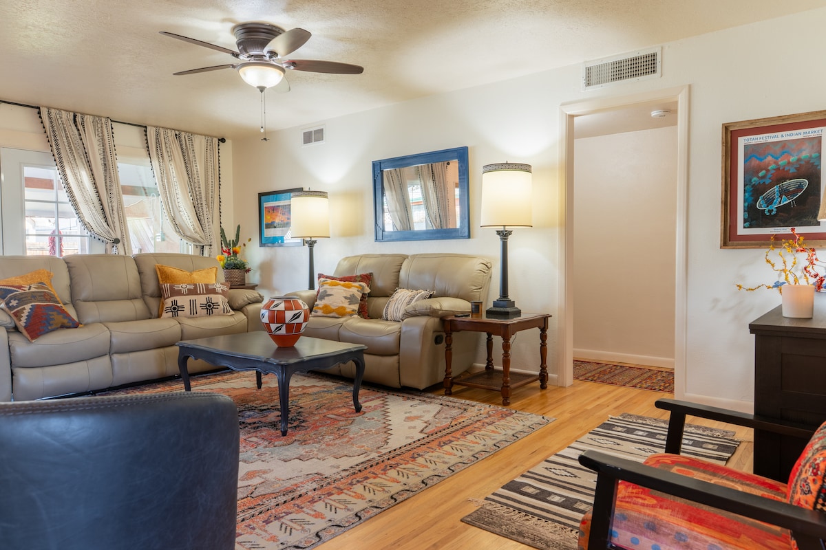 "Welcome to Desert Sage! Our 3-bedroom, 2-bathroom home is the perfect base for families looking to explore the enchanting state of New Mexico. Our cozy home sleeps up to 8 people comfortably. Immerse yourself in the culture and beauty of the region. Enjoy a spacious living area, a fully equipped kitchen, and an outdoor dining space. Conveniently located near hiking trails, historic sites, and local attractions. Book your stay now and embark on a journey of discovery in the Land of Enchantment!"
