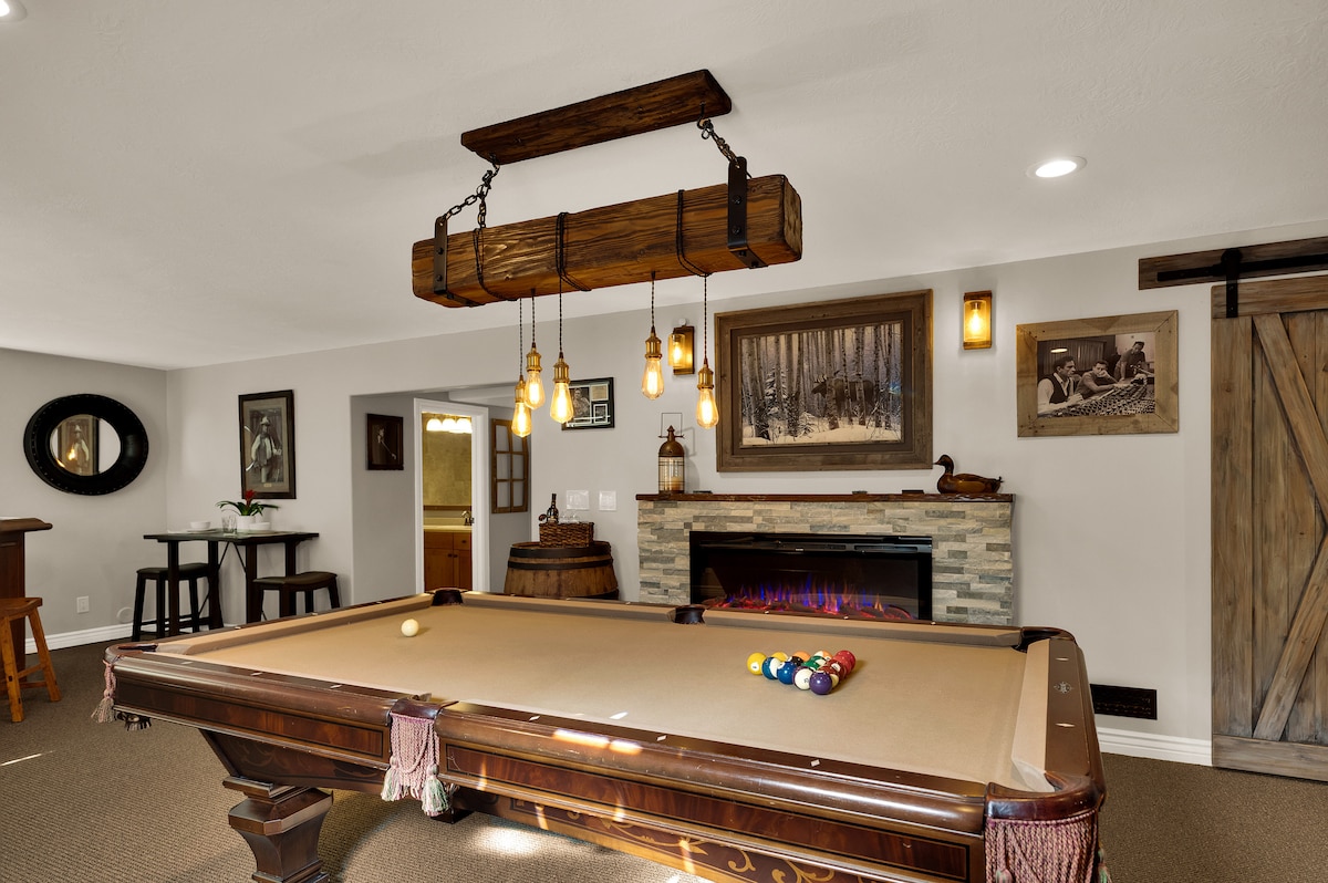 Central to everything Salt Lake, perfect for big groups/multi-family! Spa retreat - enjoy the 12 person sauna, large hot tub, grand gardens, large hammock and home gym. Huge patios, outdoor & indoor fireplaces and central air. Full basement with ping pong table, foosball, air hockey, card table, pool table and Pickleball net. Stocked kitchen for 20. A serene retreat, with many secluded spots to take in the beautiful surroundings. One exit away from ski area exits, shops and restaurants abound.