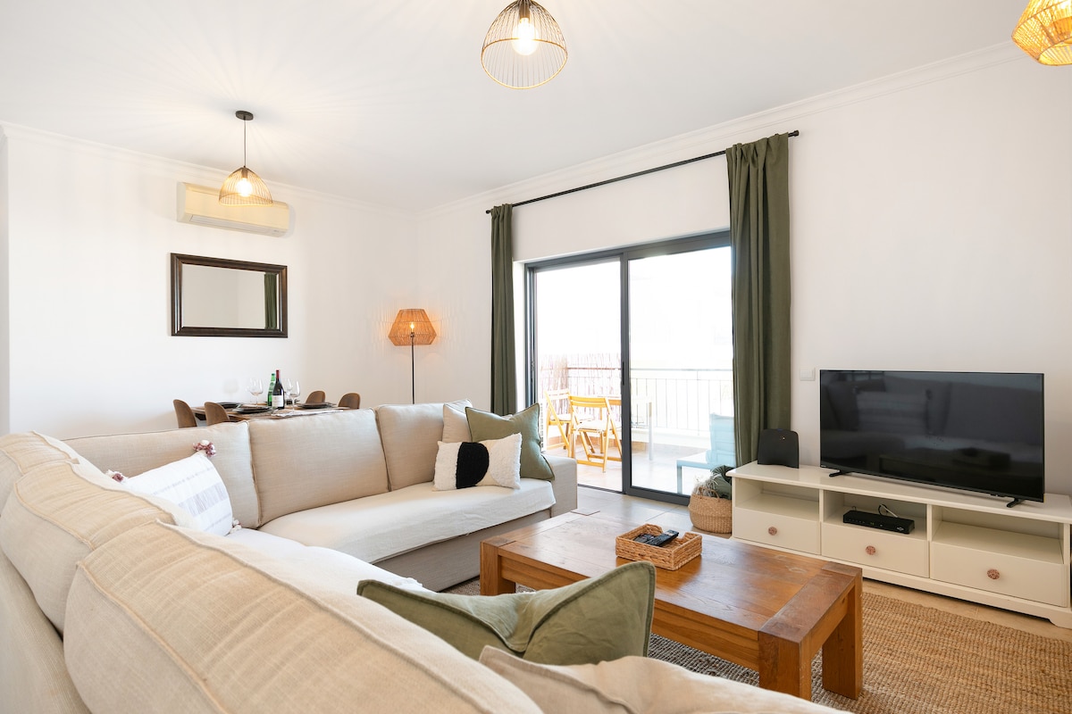You'll be in a cozy apartment with a large sunny balcony and a beautiful sea view, within walking distance from great beaches, restaurants and pubs. In Aldeia das Chaminés you'll get the best of both worlds, a quiet and relaxed atmosphere to enjoy a beautiful sunset or chilling out in the balcony, but you're still just in 5 minutes walking distance from the town square Licence 67464/AL In case of conflict the competent court is from portugal and refuse any other
