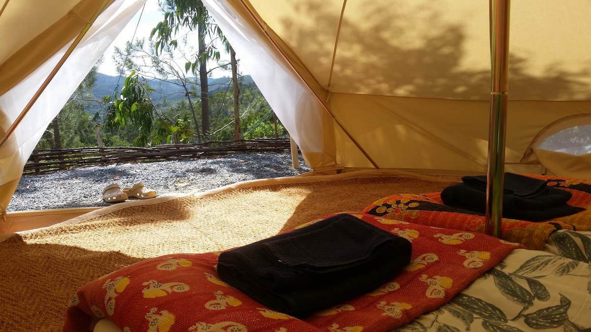 Feel Inspired, Unplug & Reconnect with yourself through the best of nature. In the world class Aljezur, a new ecological retreat opens for just a few that really enjoy the outdoors. It is not for everyone. Relax in a super size and comfortable bell tent, surrounded by a wild mountain paradise of 50 hectares farm with a local wild lake. 10 minutes driving from the most amazing beaches and 5 minutes from Aljezur. Quinta Alma is all you need to reconnect with life, nature and yourself *****