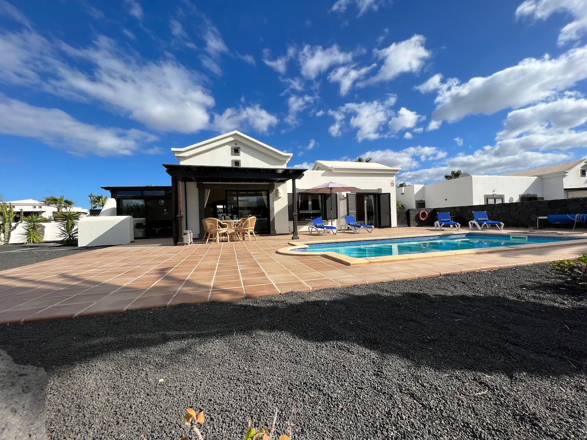 Our house is close to the sea, beaches and the bus stop, where you can catch the bus that takes you to Playa Blanca in 5 minutes. It is the perfect place for relaxing holidays for couples or families with kids, and a wonderful temperature also during winter. The outdoor patio is well protected against the wind. The house is fully equipped with TV, WiFi, barbecue, heated swimming pool, and furnished as comfortable as possible, as this is where we spend our holidays, when we come to Lanzarote.