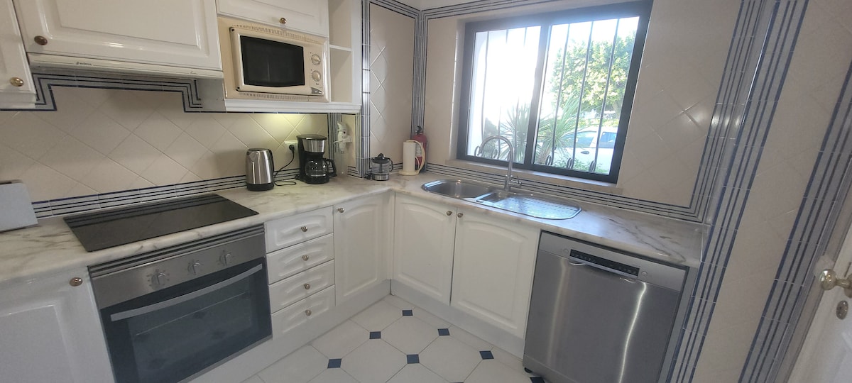 This sublime holiday apartment of about 55m2 is fully designed to make you feel at home. Free access to swimming pools, tennis courts, football fields and kids playground! Restaurants, shops and the beach "Praia da Rocha" are only 8 minutes away by foot. Free parking space available in front of the accommodation. We also provide free Wi-Fi and a Smart TV. There is a dishwasher but no washing machine in this apartment. However, you can find laundromats in shopping centres.