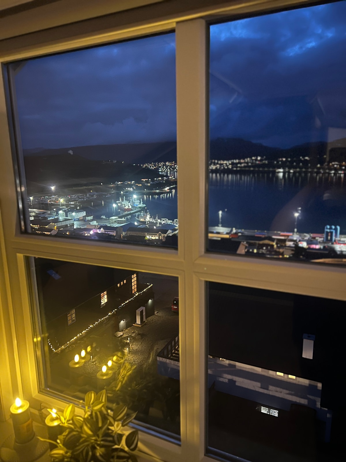 Modern 3-bedroom, 2-bath apartment in Hoyvík with stunning panoramic views over Tórshavn and the ocean. The master bedroom has a double bed and private bathroom. One room has two single beds, and the third has one single bed. Fully equipped kitchen and open living/dining area with ocean views. Located in a quiet, newer neighborhood with grocery store, shopping, restaurants, and a football field all within walking distance.