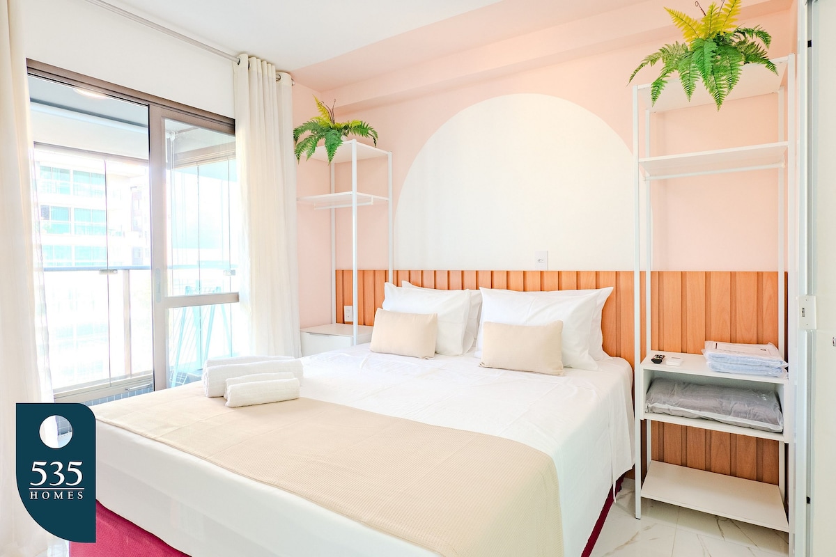 Managed by @Insider.Bahia - Apartment with sea view, a few steps from Farol da Barra beach, with cozy and very elegant decor. Bedroom and living room apartment, with air conditioning, perfect space for the home office with high-speed wi-fi, large and cozy balcony, fully equipped American-style kitchen. Apt has a free parking space. Located close to the "Farol da Barra" fort, beaches, museums, restaurants and bars, the space is an invitation to the beauties of Salvador.
