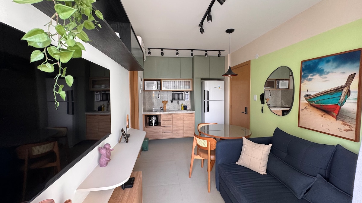 Managed by @Insider.Bahia - Apartment with sea view, a few steps from Farol da Barra beach, with cozy and very elegant decor. Bedroom and living room apartment, with air conditioning, perfect space for the home office with high-speed wi-fi, large and cozy balcony, fully equipped American-style kitchen. Apt has a free parking space. Located close to the "Farol da Barra" fort, beaches, museums, restaurants and bars, the space is an invitation to the beauties of Salvador.