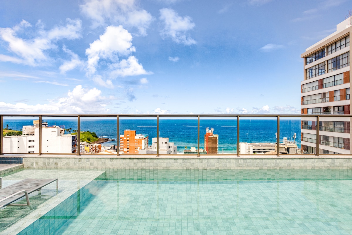 Hospede-se nesse espaço moderno e aconchegante com todo o conforto que vc merece à 200m do circuito do carnaval. Varanda com vista fascinante. Academia, Rooftop gourmet com Piscina vista Mar deslumbrante, Chuveiro, Espreguiçadeiras, Mesas e cadeiras . Tudo isso na melhor localização possível, a minutos caminhando até a praia, Farol, Cristo e Porto da Barra, Restaurantes, Bares, Delicatessen, mercados, Farmácias, Shopping e tudo o mais que possa vir a precisar pra uma estádia Inesquecível.