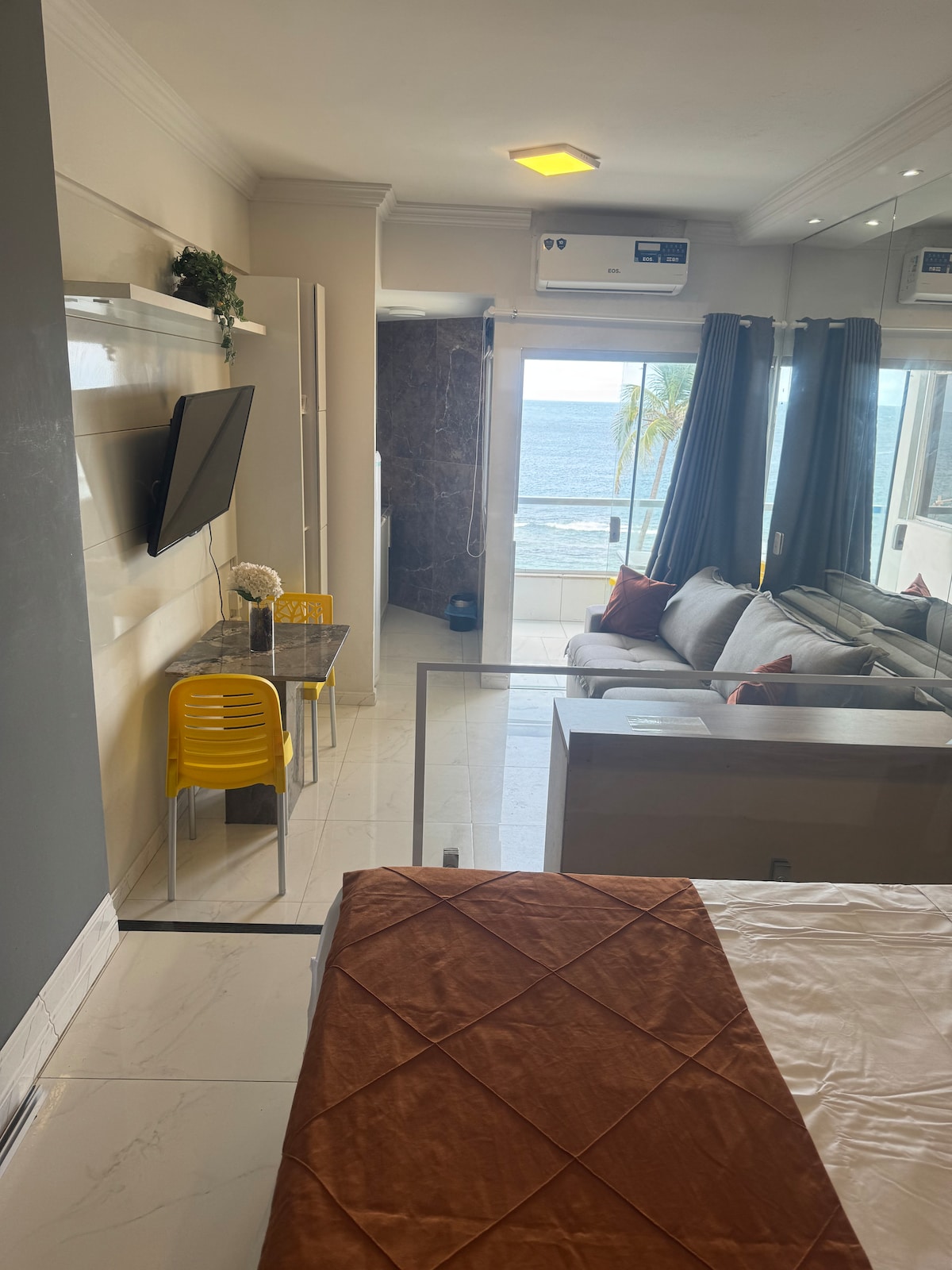 Comfortable and modern Flat on the beach, fully renovated and furnished, privileged location, close to bars, restaurants and all the bustling nightlife of Barra. The Flat has a swimming pool with the best view of Farol da Barra beach, in addition to a daily cleaning and housekeeping service, silent split air conditioning, 50” Smart TV and Wi-Fi. Situated in front of the delightful natural pools of Praia da Barra (just cross the street) and with a beautiful shore to stroll around.