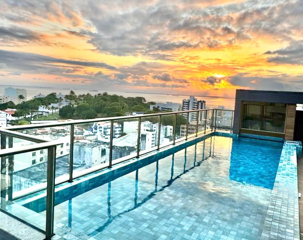Desfrute de um apartamento com vista para o mar, onde você poderá curtir um lindo pôr do sol. Curta piscina na cobertura com vista mar, sauna, espaço para home office, ótima localização: 600m da praia da Barra, 400m do Shopping Barra, 500m do mercado, 750m do Porto da Barra, 800m do Hospital Português, 1km do Farol da Barra, próximo a restaurantes e bares. O apartamento contém:fechadura eletrônica, camas de casal e de solteiro, poltrona confortável,utensílios de cozinha e roupas de cama e banho.