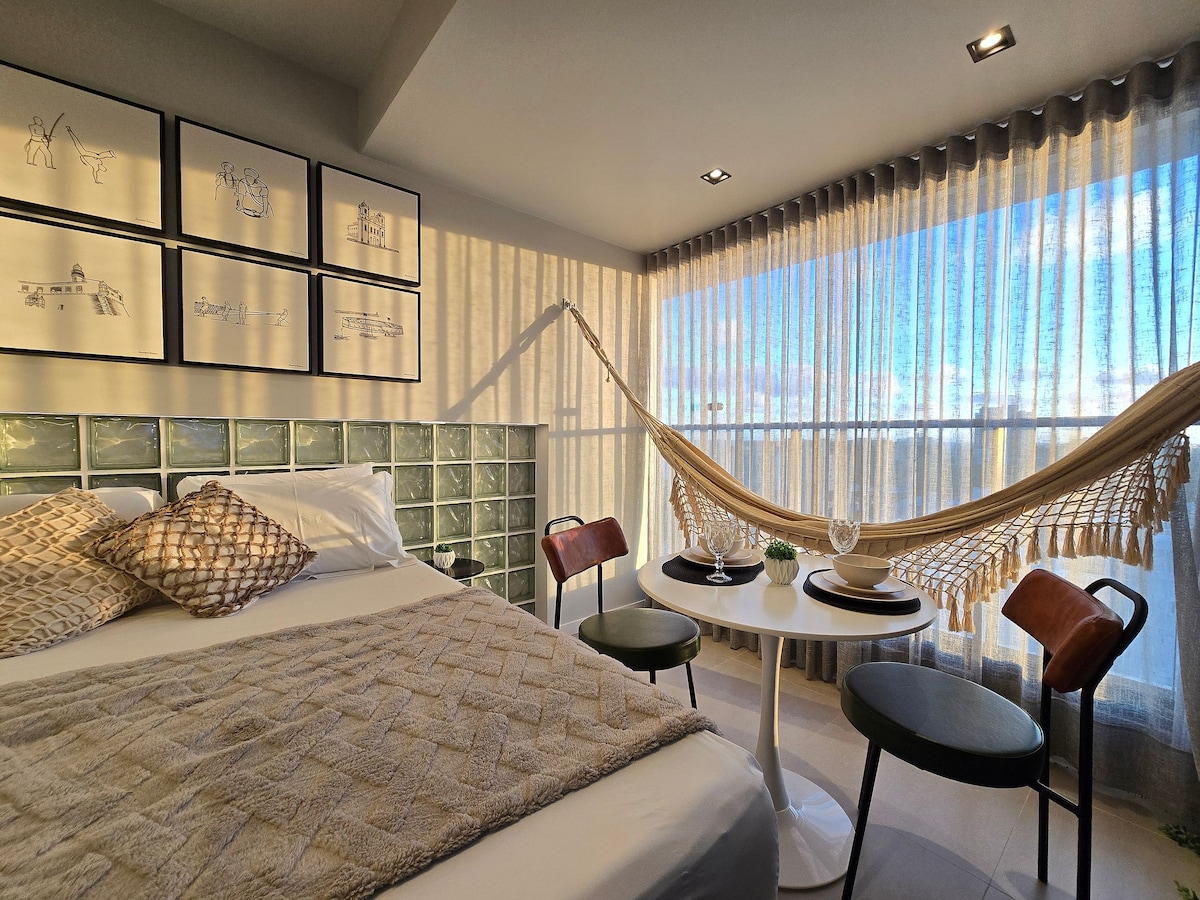 Hospedar-se no Flat Smart Farol da Barra é estar no coração de um dos bairros mais encantadores de Salvador. Aqui, você pode fazer tudo a pé: caminhar pelo calçadão, assistir ao pôr do sol, explorar a cultura local. É a combinação perfeita de conveniência, beleza e segurança, ideal tanto para quem vem a lazer quanto a trabalho. O apartamento dispõe de suite com ar-condicionado, sala de estar integrada com cozinha equipada com geladeira, cafeteira , Wi-Fi, microondas