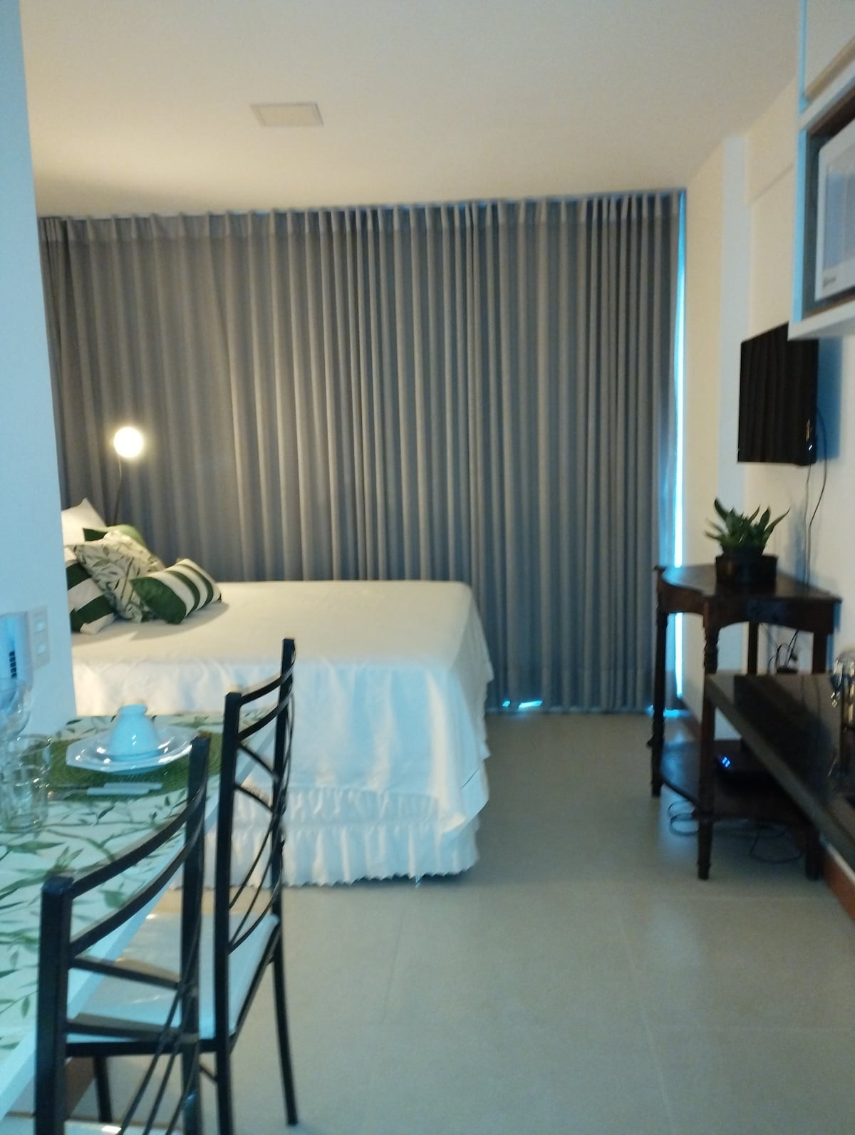 Uma excelente hospedagem situada na Barra, pertinho do praia! A Praia fica a 60m. O prédio dispõe Piscina, academia, garagem, lounge compartilhado e recepção 24 horas. O apartamento dispõe de ar-condicionado, 1 quarto, sala de estar, cozinha totalmente equipada com geladeira, cafeteira , Wi-Fi, microondas, 1 banheiro com chuveiro elétrico. Além disso, o apartamento oferece um terraço ao ar livre. Horários: Academia - 09 as 23h Piscina - 08 as 19h Lavandeira: Valor por ciclo - $12,59