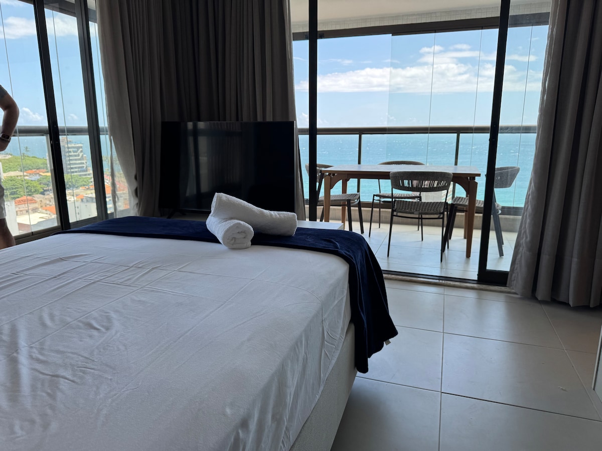 Studio localizado no 9° andar, é moderno e aconchegante, mobiliado e decorado pensando em seu bem-estar, com vista para o mar da Bahia. Localizado há cerca de 300m do cartão postal de Salvador, o Farol da Barra, em uma das regiões mais privilegiada da cidade. A poucos passos da praia, o edifício conta com sistema de segurança e infraestrutura completa: deck com piscina no rooftop, office bem equipado, lavanderia, piscina, academia, são alguns dos itens que farão da sua estadia inesquecível.