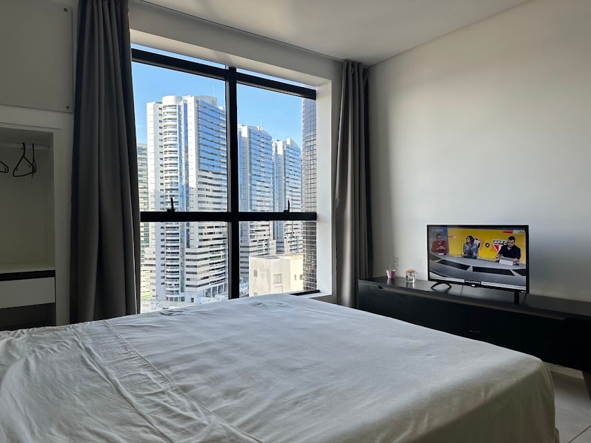 Comfortable and modern Flat on the beach, fully renovated and furnished, privileged location, close to bars, restaurants and all the bustling nightlife of Barra. The Flat has a swimming pool with the best view of Farol da Barra beach, in addition to a daily cleaning and housekeeping service, silent split air conditioning, 50” Smart TV and Wi-Fi. Situated in front of the delightful natural pools of Praia da Barra (just cross the street) and with a beautiful shore to stroll around.