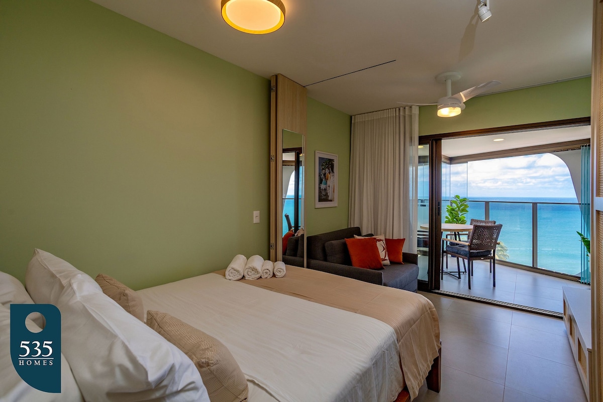 Comfortable, modern and finely decorated apartment in the brand new Building 535 Barra, with a beautiful view of Praia do Farol da Barra. The apartment has split air conditioning in all rooms, 50" Smart TV, 500Mb Wi-Fi (optical fiber), washing machine and dryer, swimming pool, gym and private parking. Central and privileged location, close to the bustling nightlife of Barra and a few meters from its delicious natural pools and its main tourist spot - Farol da Barra.