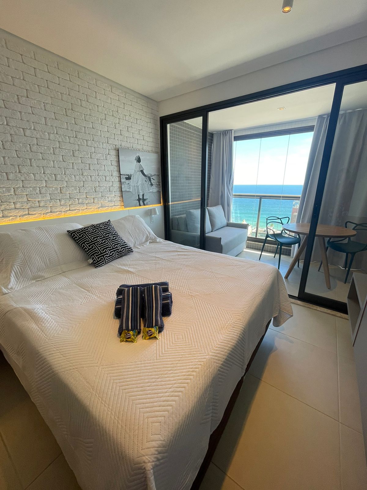 Apartamento novo e moderno, 2 quartos climatizados, sala aconchegante, cozinha completa com vista incrível para o mar. Localizado em frente à praia da Barra, no circuito do Carnaval, perto de restaurantes, bares e pontos turísticos. Conta com Wi-Fi rápido, garagem e portaria 24h, oferecendo conforto, segurança e praticidade. Perfeito para famílias, casais ou amigos que desejam curtir Salvador com estilo o ano inteiro. experiência elegante neste lugar bem-localizado.