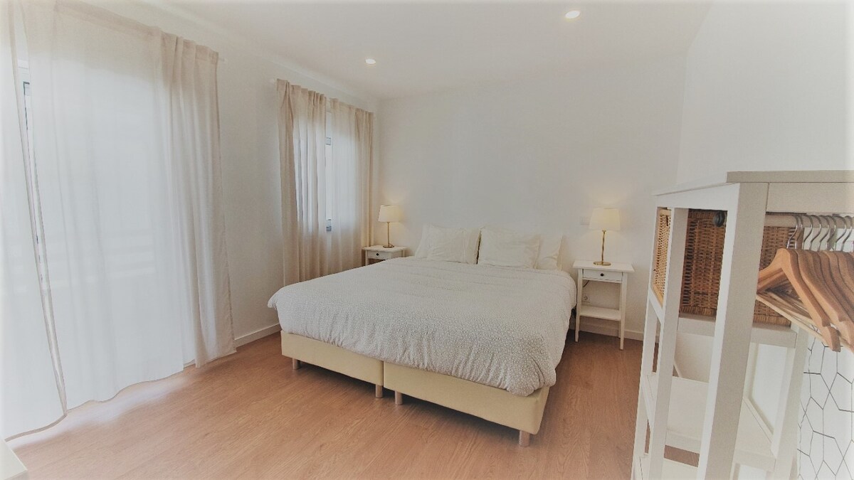 A newly renovated modern-coastal style Two bedroom apartment with spectacular views over the Atlantic Ocean and picturesque Nazaré Village and its hills, located in Sitio, a stone throw away from the Big Wave Lookout as well as Nazaré village and its beaches, whether watching the sun rise with a coffee, or the sun set with a glass of wine on the balcony you will be mesmerised by your surroundings. The apartment is perfect for couples and families on holiday, remote workers, long stays