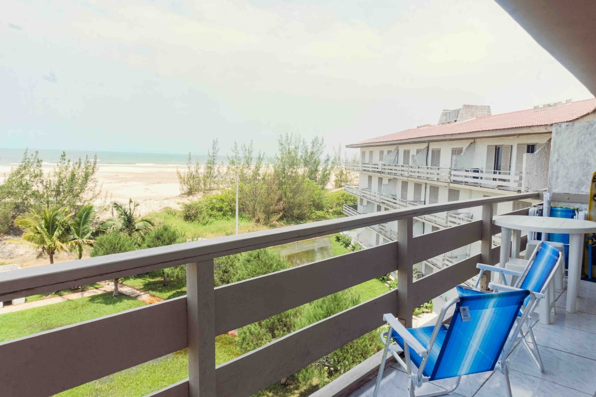 apartamento térreo com acesso a um terraço de vista panorâmica para Mar onde é possível desfrutar o nascer e por do sol na água 🌅 Roupas de cama e toalhas de banho e rosto inclusas.