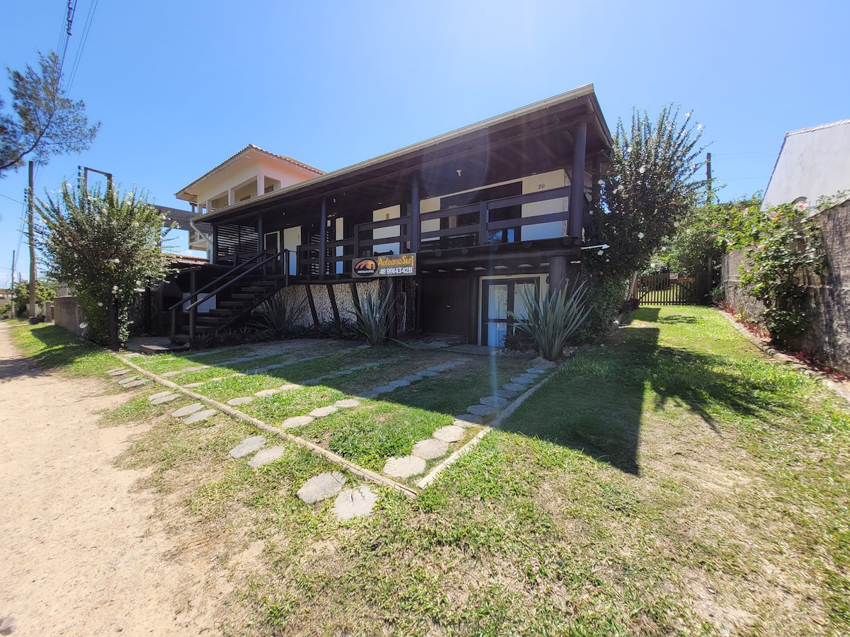 Maresia’s surf house fica localizada no Farol de Santa Marta a 150 metros da praia do Cardoso. Possui 2 quartos e um mezanino, todos com uma cama de casal e ar condicionado. Cozinha completa com fogão, forno, geladeira, micro-ondas, e churrasqueira integrada com um Deck coberto. A casa dispõe estacionamento privativo com portão eletrônico e um belo jardim para desfrutar bons momentos. Qualquer dúvida estamos a disposição!! Será um prazer receber você!! OBS: não oferecemos toalhas de Banho