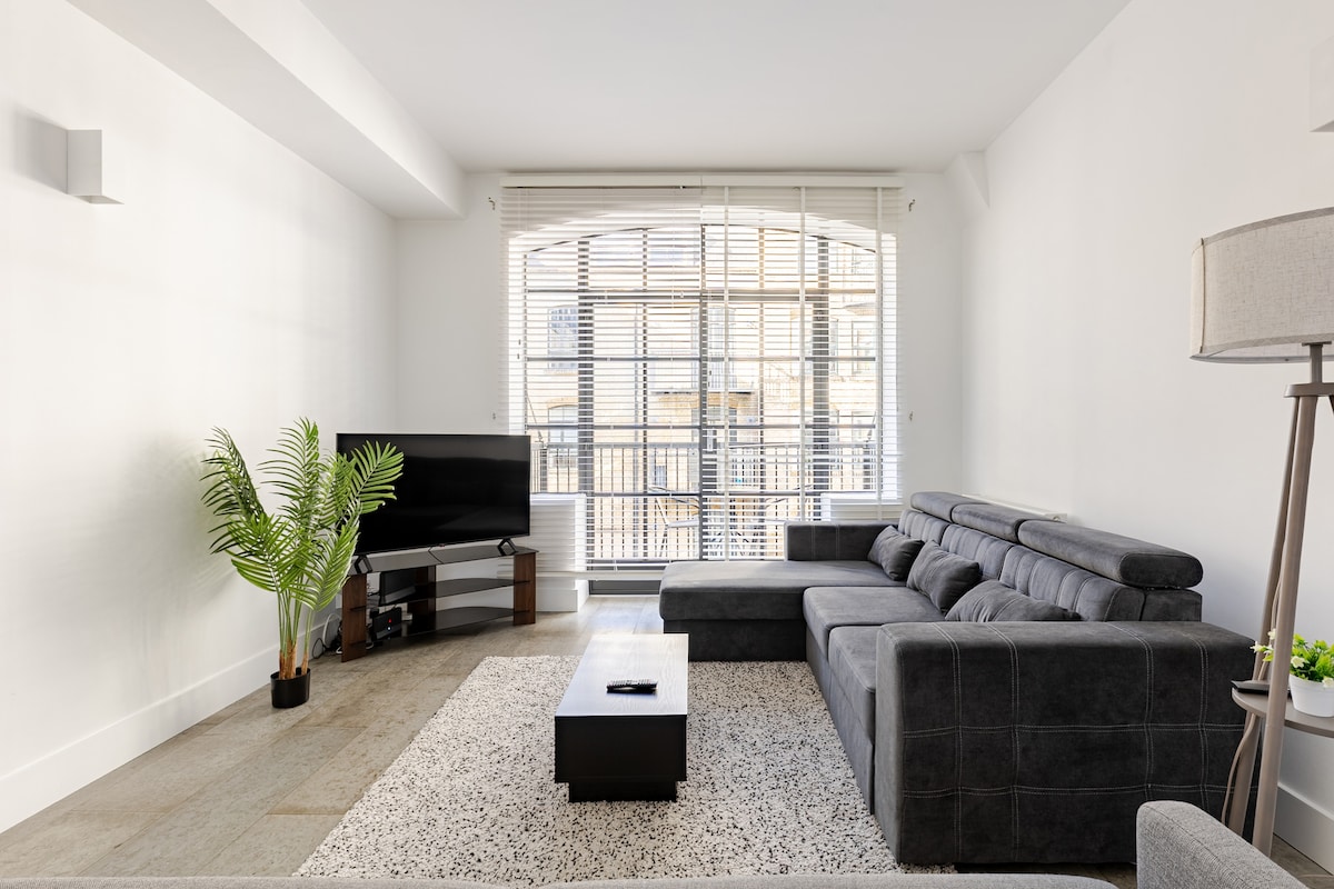 This stylish apartment with private balcony is located only steps away from Farringdon station (direct trains from Heathrow, Gatwick and Luton airports). It is situated in a modern, quiet development with elevator. The apartment features a UK king size (US queen) bed, a state-of-the-art shower room, a fully equipped kitchen with dishwasher, coffee machine, microwave and fridge freezer, as well as a washer-dryer. The TV offers access to Netflix and Freeview channels, among others.
