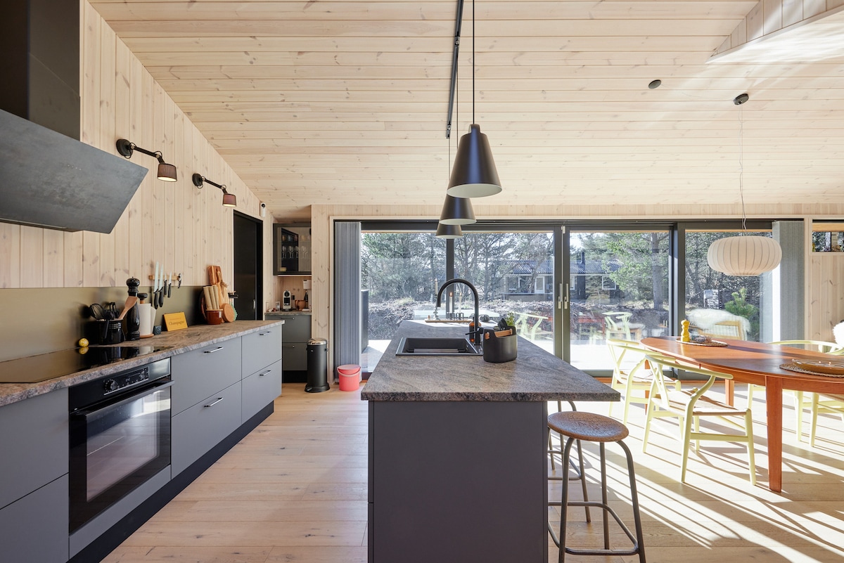 Welcome to our holiday home in idyllic Kettrup Bjerge, 750 meters from the North Sea. Large panoramic windows look out over the wild dune landscape, bringing nature inside. The house features high ceilings, calm scandi-vibes, and a fireplace. A space designed for peace, presence, and slow days. While you stay in tranquility, Løkken is a short drive away. Explore Ingstrup’s dairy, artistic Lønstrup, or the Rubjerg Knude lighthouse. It's a setting for quiet moments and reconnecting with nature.