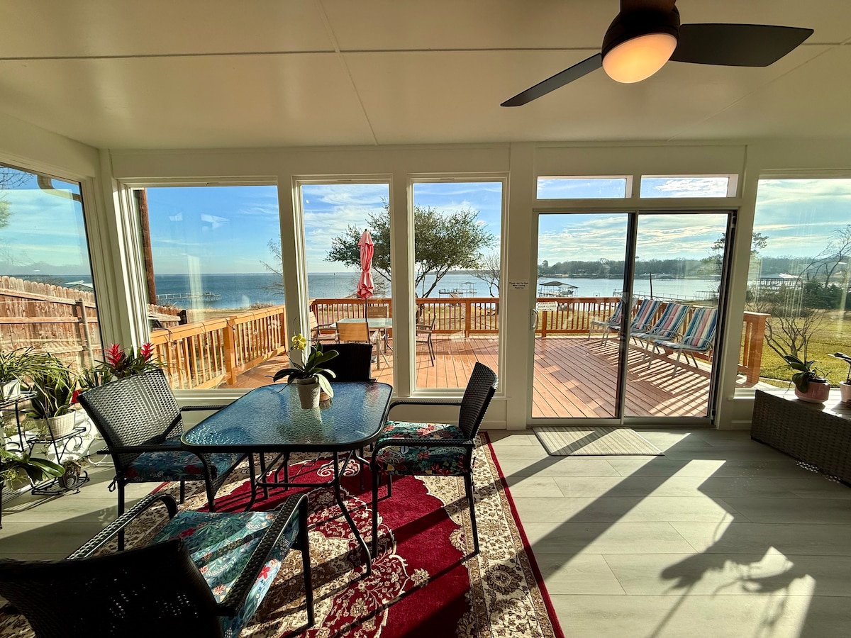 Your perfect getaway that is designed with your comfort in mind. Relax in this beautiful home with view of Lake Ray Hubbard. Sleep well on our luxurious king and queen mattresses and beddings. Enjoy our outdoor oasis that has BBQ,a dining table, seating with a fire pit and a hammock. We have a crib/playard and high chair for your convenience. Your kids will have a blast in our large indoor game room. Minutes to walk to the lake to fish or enjoy the view/sunset.