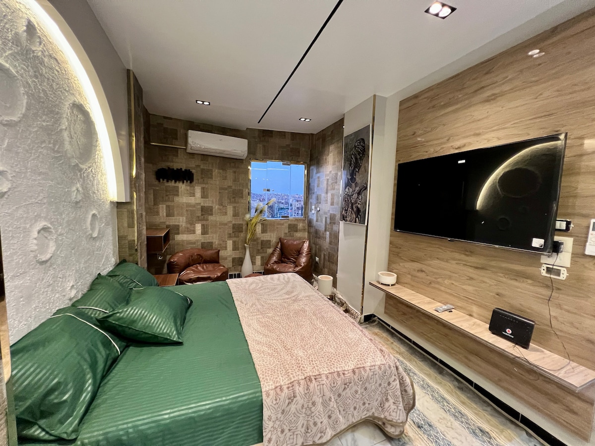 Bright & Cozy Studio for Rent – Downtown Aswan Located right in the heart of Aswan, directly in front of El Tabia Mosque, this charming studio offers a unique view of both sunrise and sunset – a rare treat for guests looking for peace, inspiration, and beautiful lighting. The space is ideal for solo travelers, couples, or creatives needing a quiet spot with great natural light. Whether you’re staying for work, relaxation, or content creation – you’ll feel at home here. – Central