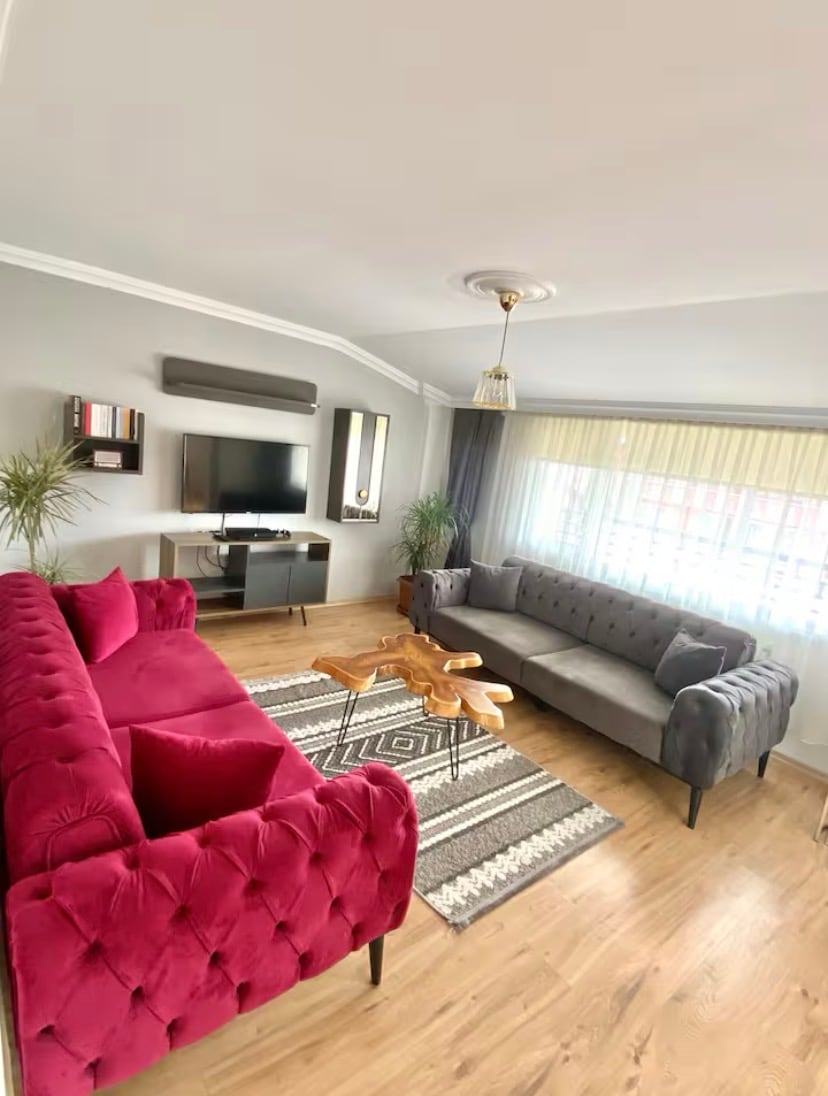 Merkezi bir konumda 120m2 olan bir dairedir geniş ve ferahtır tüm odaları aydınlıktır ailelere çok uygundur koltuklar açılabilir özelliktedir bütün daireyi dönen geniş balkonlu ve bu yerden tüm grup olarak her şeye kolayca erişebilirsiniz. Konum olarak harika bir yerde sahile plajlara yemek yerlerine ve bütün kafelere yürüme mesafesinde merkezi konumda geniş ferah bir konaklama yeri otopark sıkıntısı yok dairede mutfakda kullanılabilir temel araç gereçler bulunmaktadır